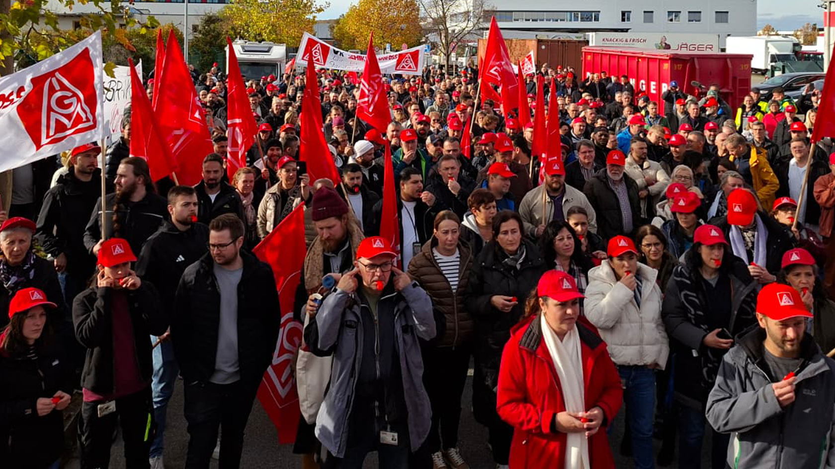 Beschäftigte von Jungheinrich in Lüneburg bei einem Warnstreik