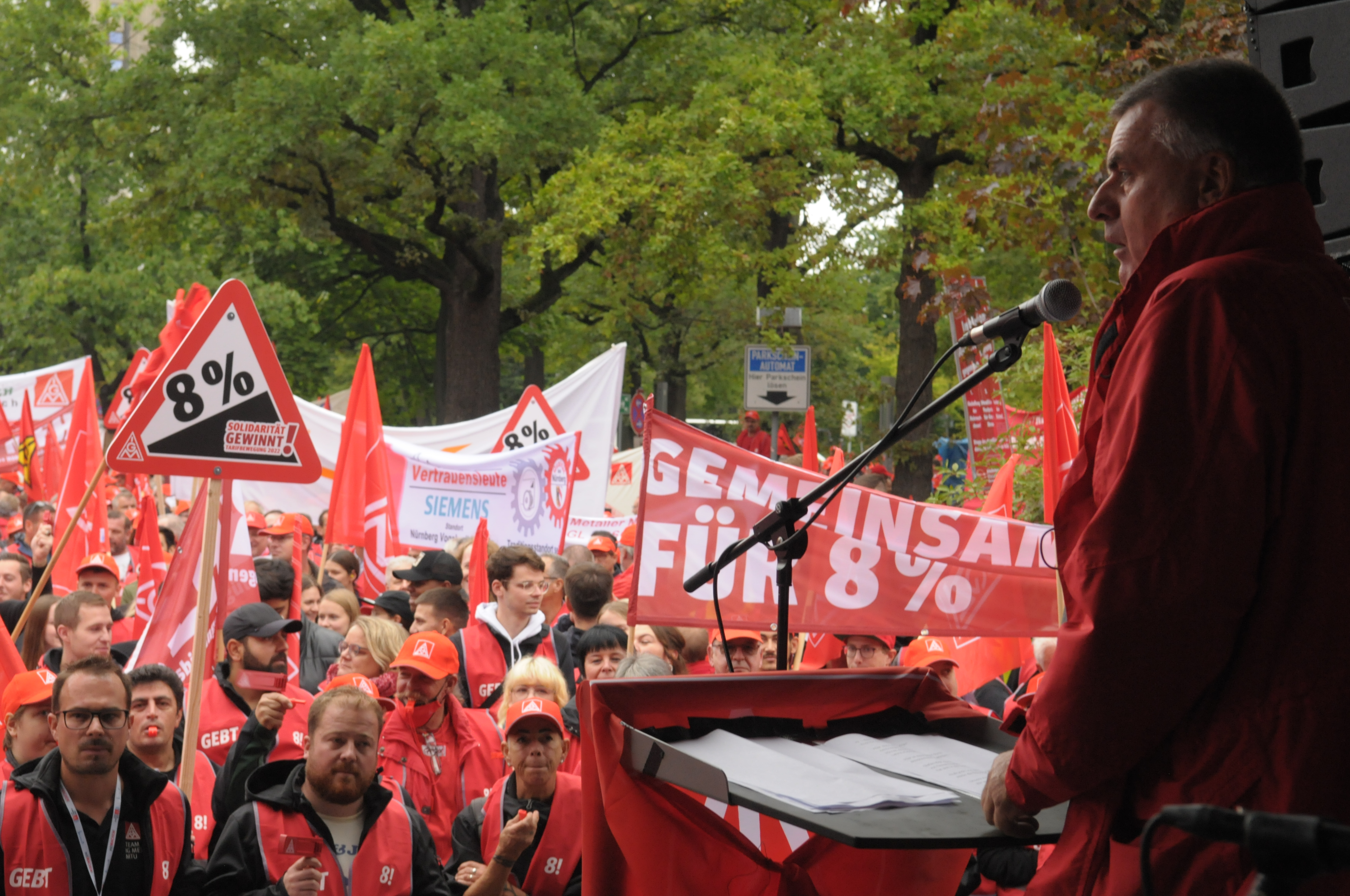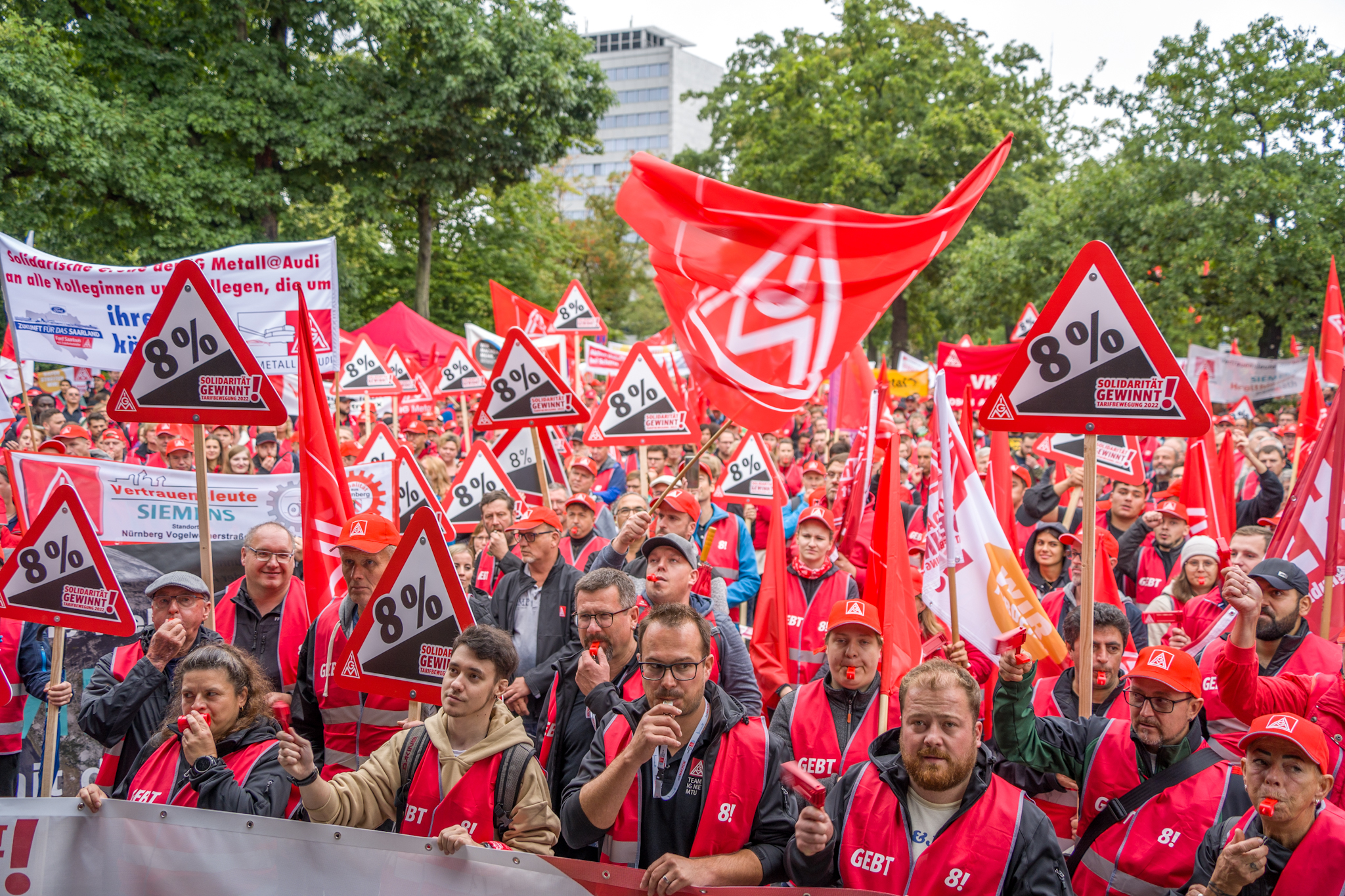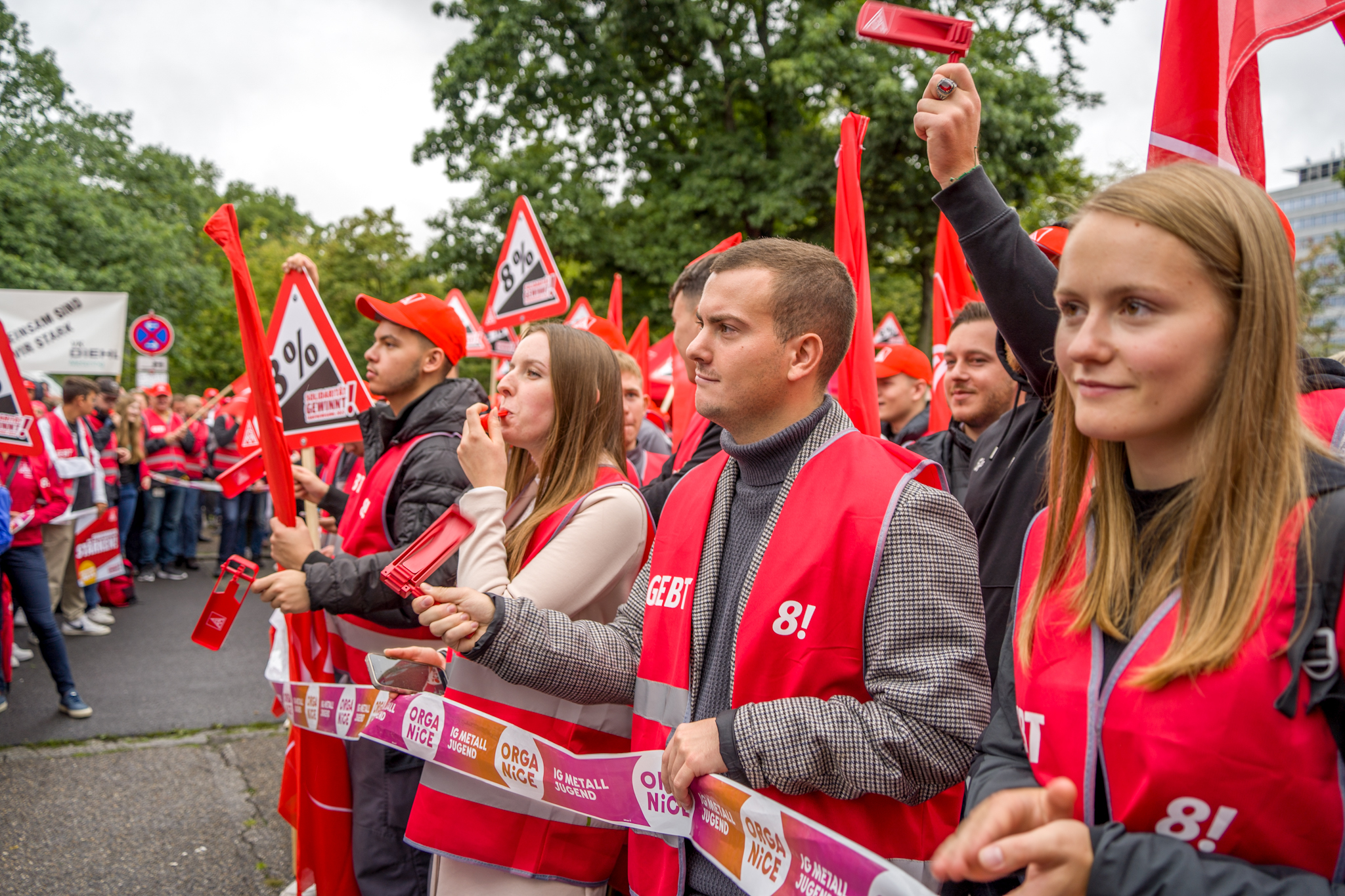 In der bayerischen Metall- und Elektroindustrie arbeiten zurzeit rund 855.000 Beschäftigte. Der Tarifvertrag läuft Ende September aus. Am 28. Oktober um 24 Uhr endet die Friedenspflicht. Die zweite Tarifverhandlung findet am 6. Oktober in München statt.