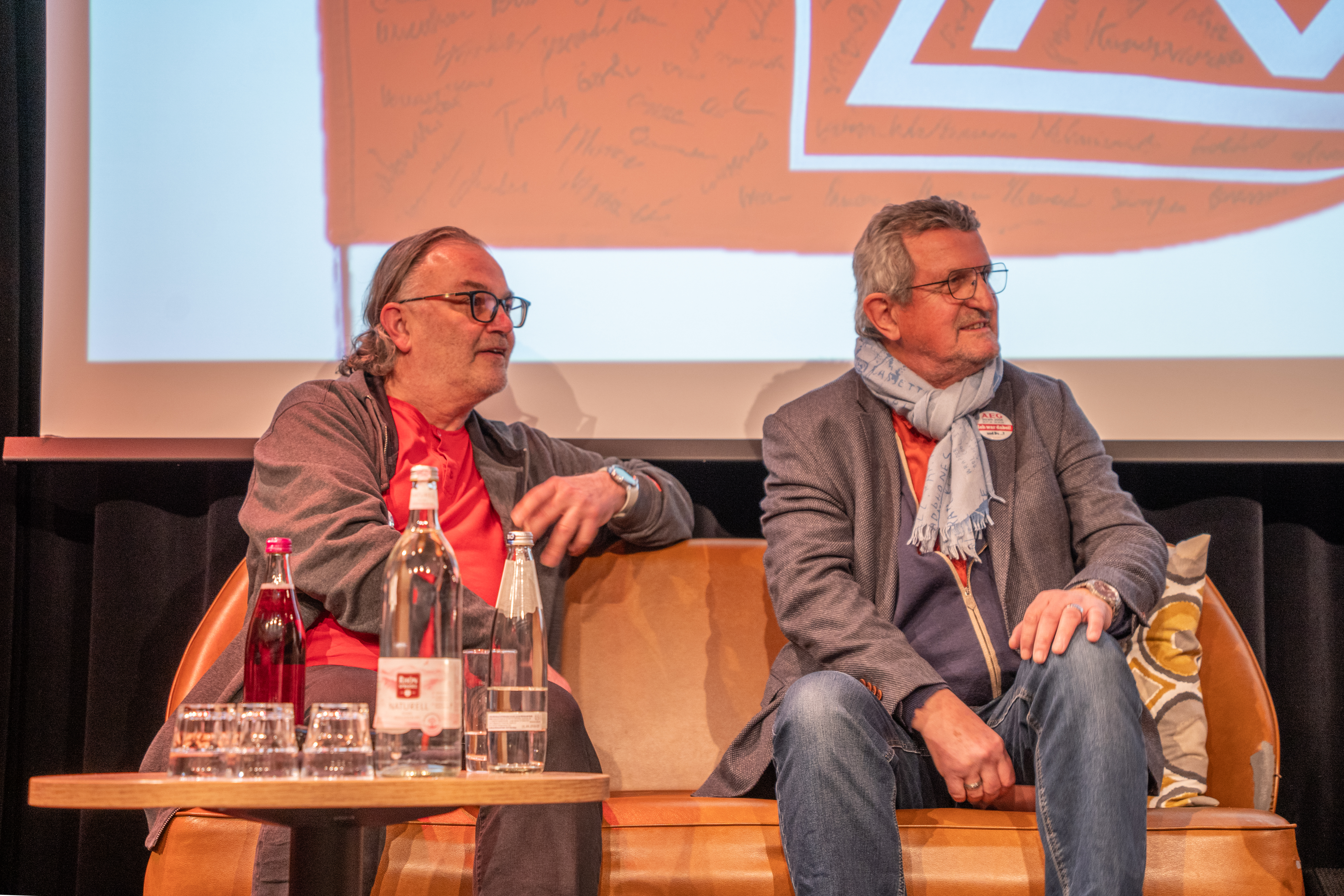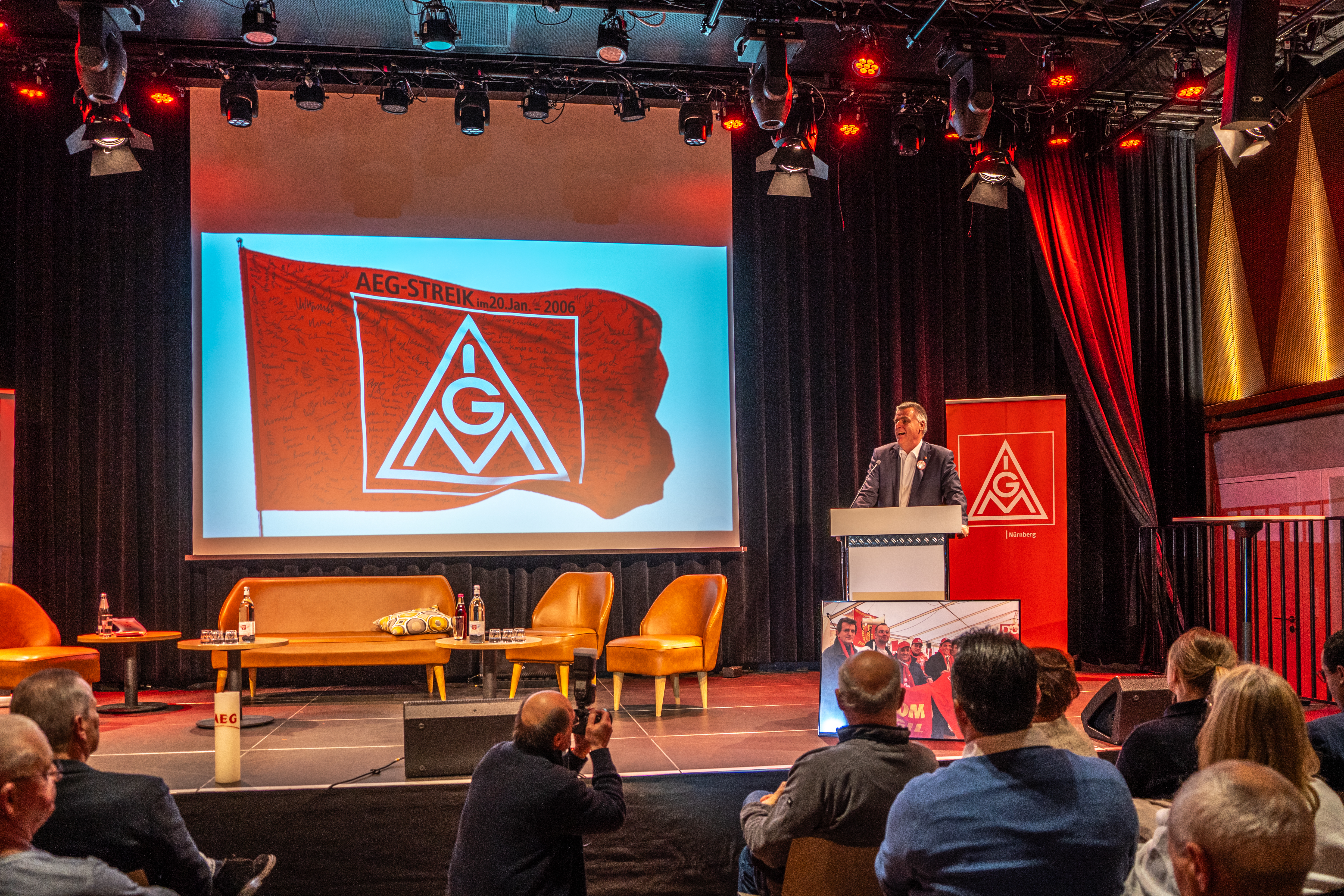 Um an die Streikenden der AEG und ihrem Kampf zu erinnern, hat die IG Metall am 19. Februar 2026 zu einer Abendveranstaltung »Auf AEG« eingeladen. Gemeinsam mit dem Archiv der Arbeiter*innen- und Gewerkschaftsbewegung Nürnberg haben wir auf den Streik im Winter 2006 zurückgeblickt. Neben einer Podiumsdiskussion mit prominenten Gästen (u.a. Uli Maly, Jürgen Wechsler, Harald Dix), wurde eine Ausstellung über den Streik bei der AEG eröffnet. Wir haben nicht nur in Erinnerungen geschwelgt, sondern auch zusammen nach vorne geschaut: was haben wir im AEG Streik gelernt und wo profitieren wir noch heute vom Einsatz der Streikenden?