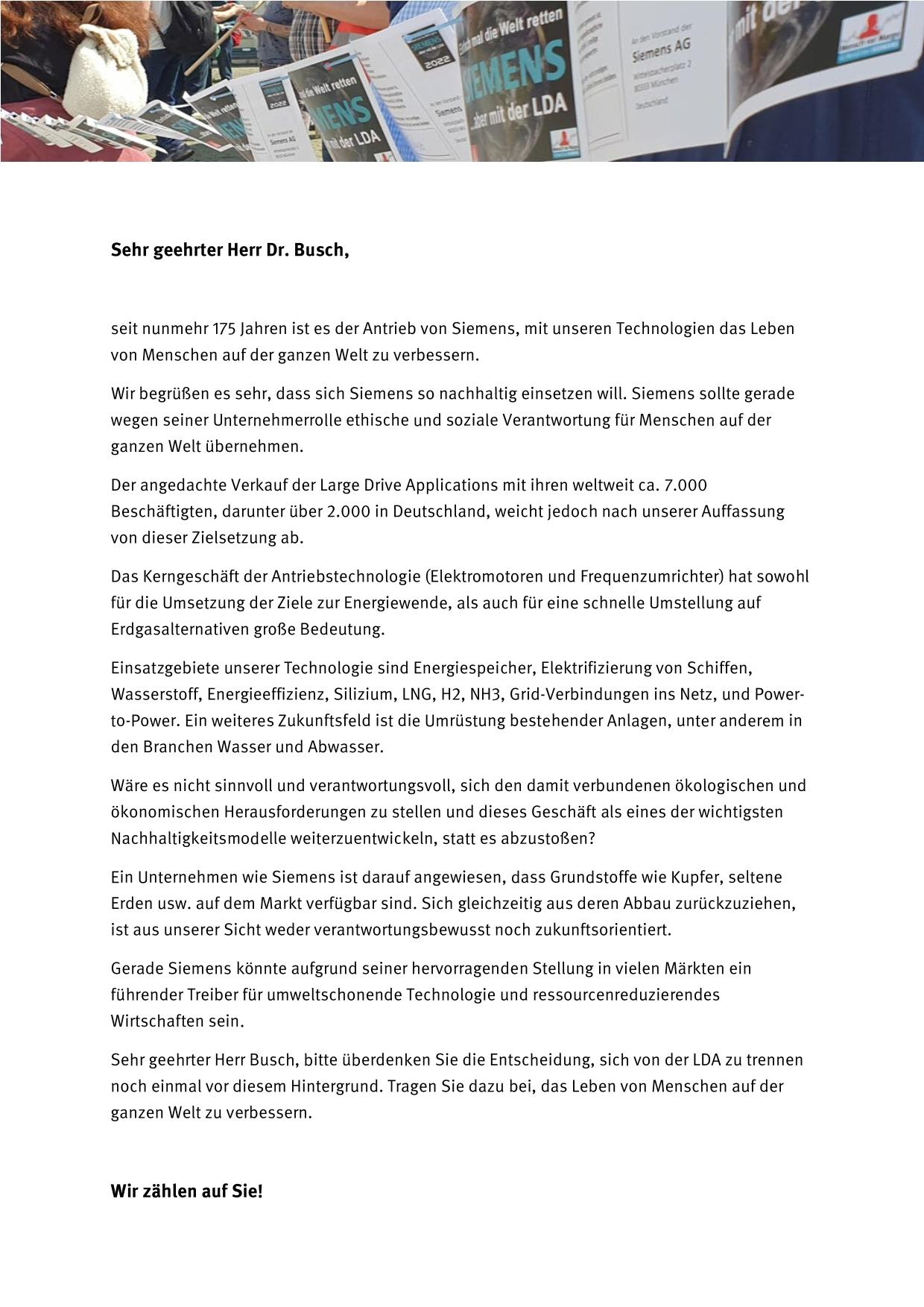 Appell für die LDA im Siemens-Konzern