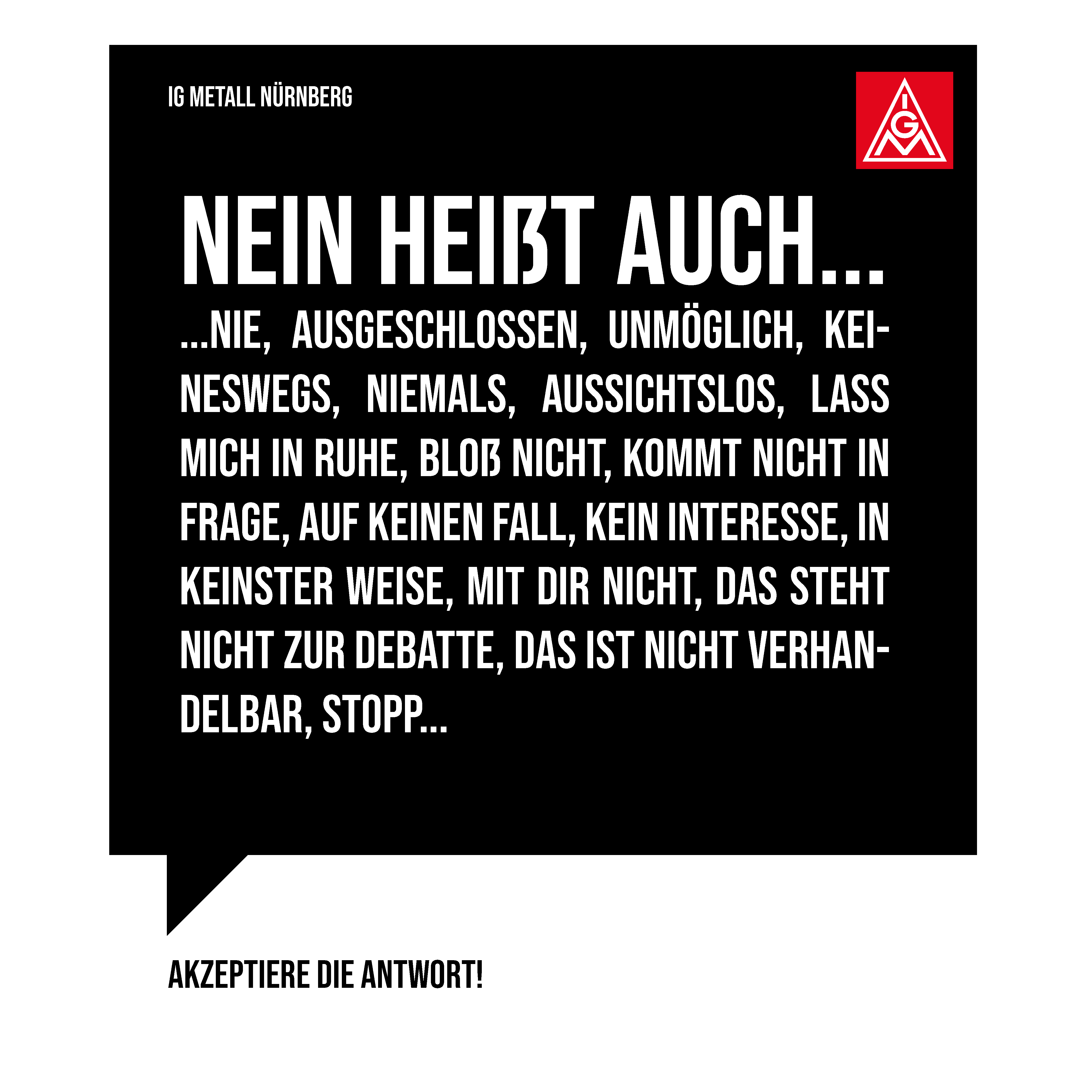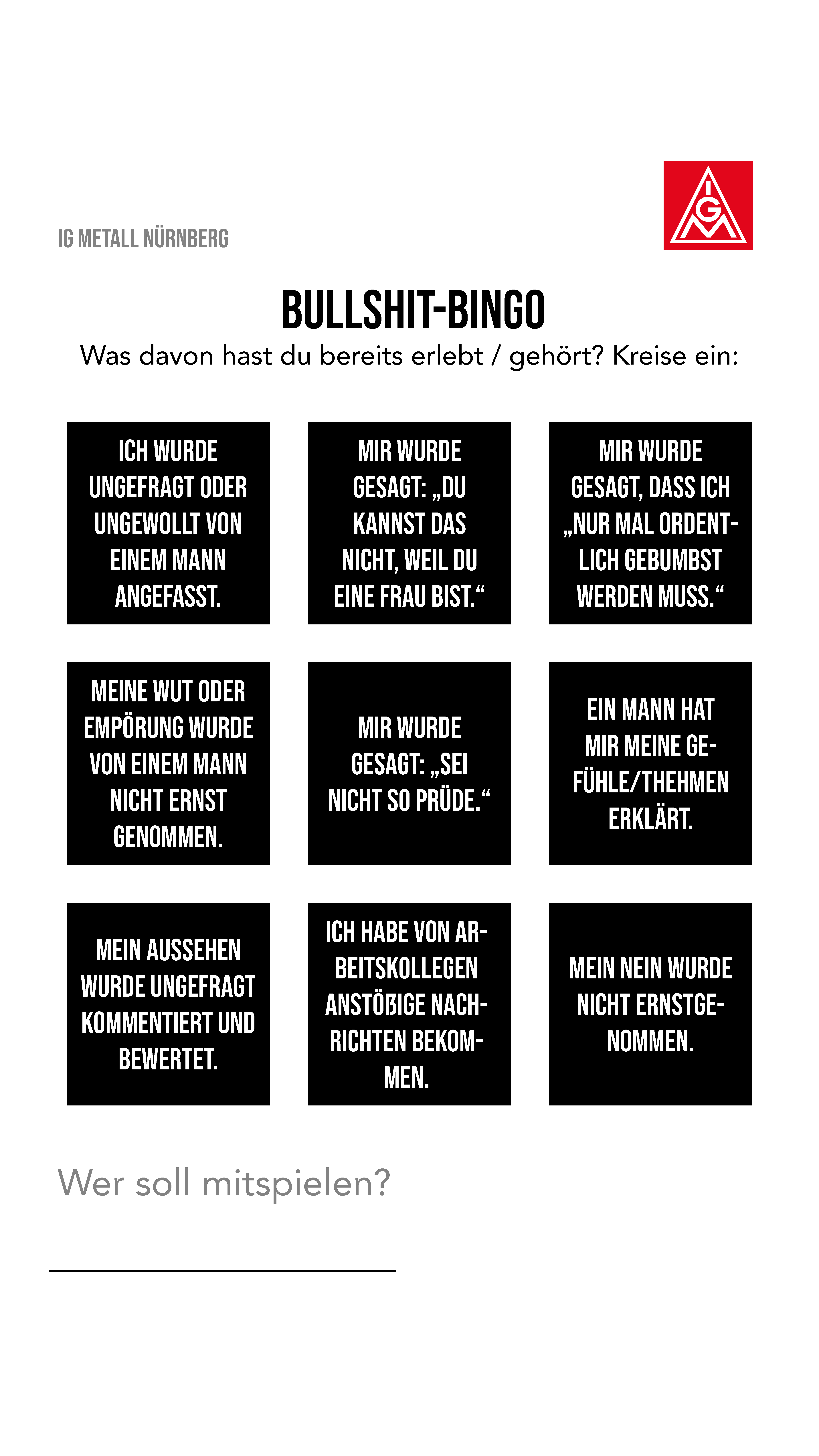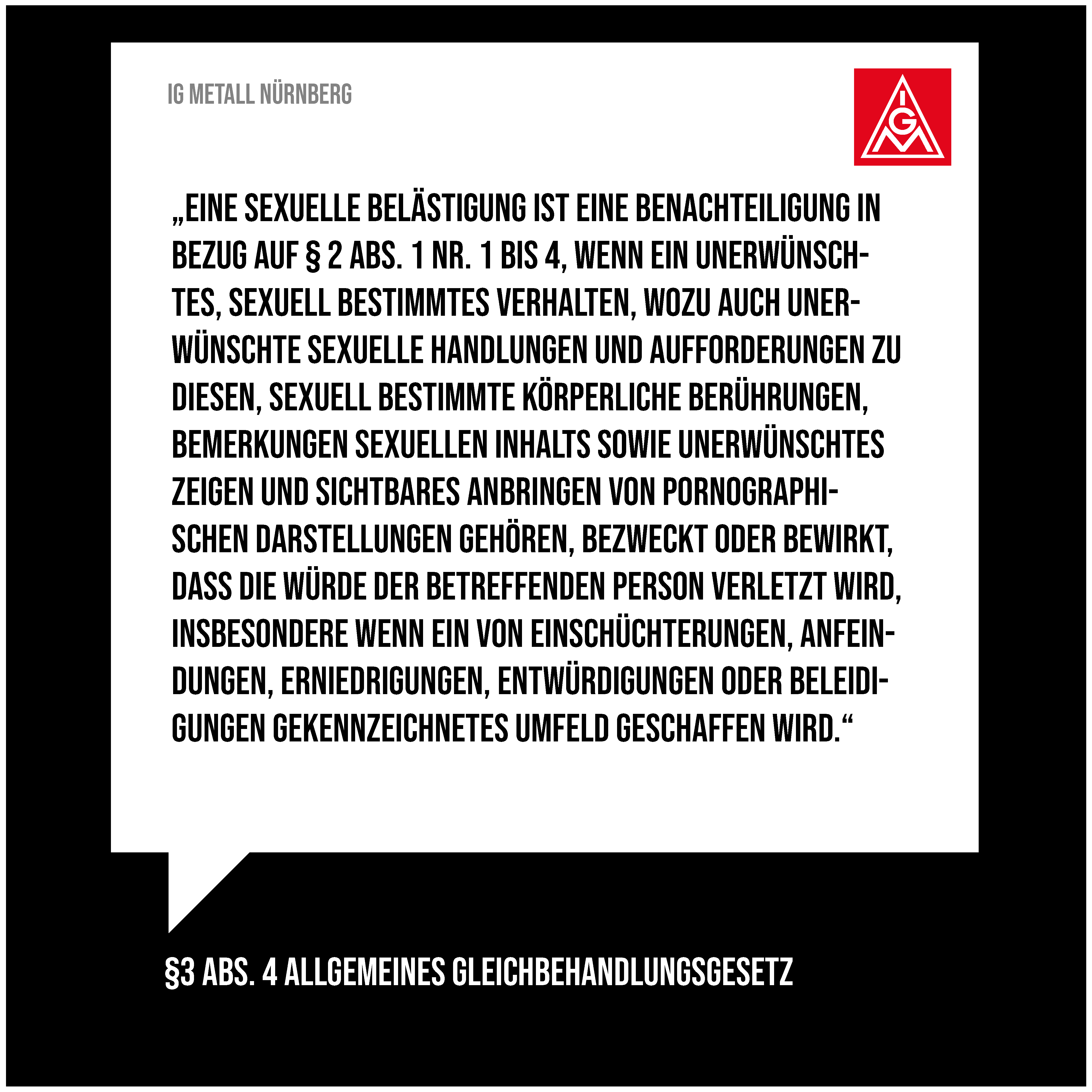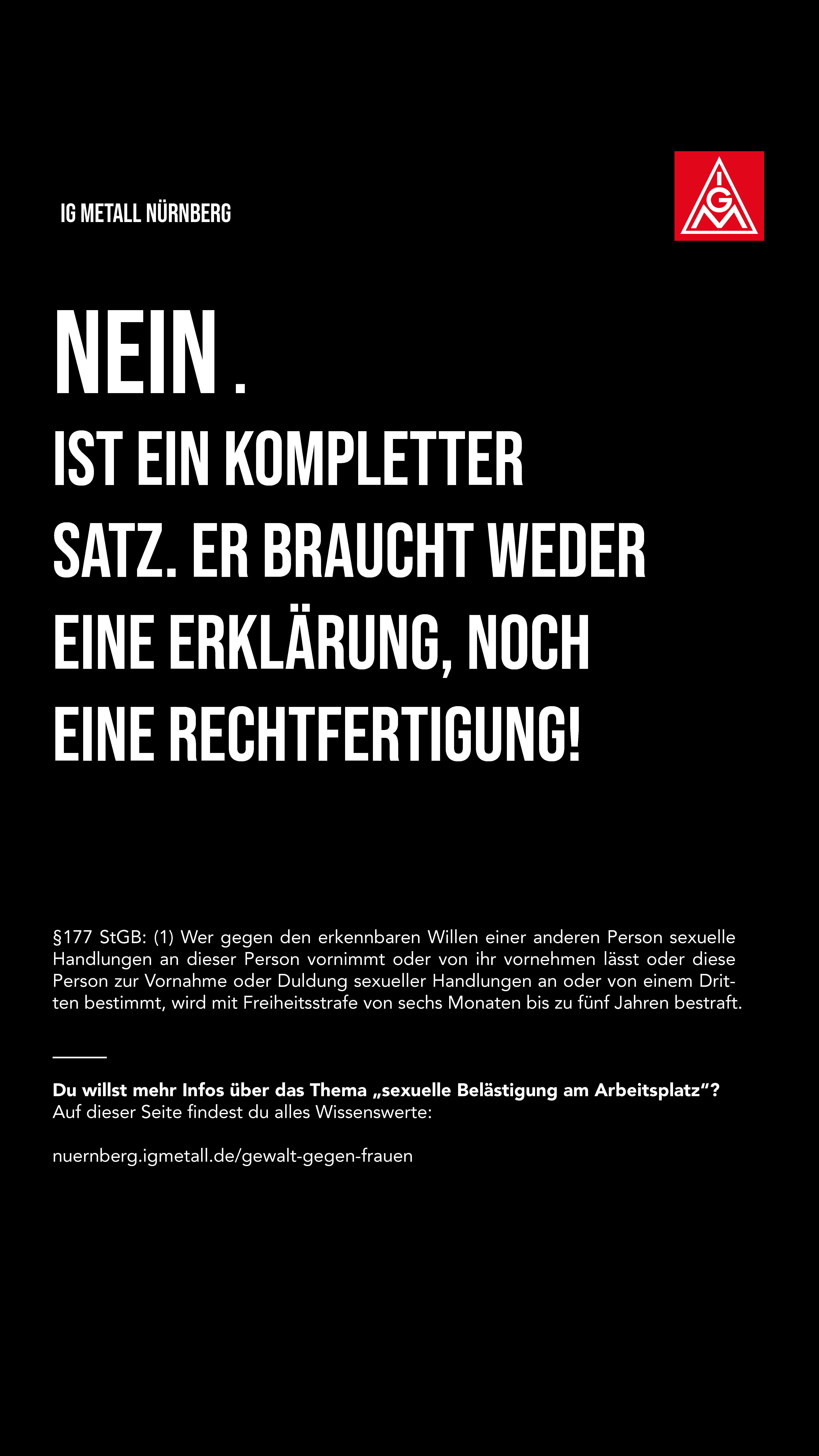 Offensichtlich gibt es hier im Arbeitsumfeld eine Herausforderung für Betriebsrätinnen, Betriebsräte und Vertrauensleute, mit der wir umgehen müssen. Der Arbeitskreis FrauenAktiv hat anlässlich des Frauentags 2022 eine Aktion zu dem Thema gestartet, die wir Euch hier präsentieren wollen. Es gibt Plakate als Download, die ihr in den Betrieben aufhängen könnt, Share-Pic’s für Social Media und einige Links zu Hilfsorganisationen und Notfall-Telefonen. Wir möchten damit einen Beitrag leisten, dass die Übergriffe als solche erkannt werden, Betroffene sich wehren können und Hilfsangebote kennen.